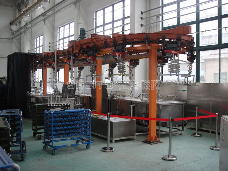 該自(zì)動滲透線主要(yào)用(yòng)來(lái)檢測氣門(mén)定零部件(jiàn),采用(yòng)了(le)懸挂鏈及電(diàn)動葫蘆傳輸機(jī)構,除上(shàng)下(xi≤à)料、觀察外(wài),自(zì)動化(huà)控制(zhì)。包括前清洗、滲透、清洗、幹燥、顯像、觀察、後處理(lǐ)等工(gōng)序。具有(yǒu)操作(zuò)簡單、性能(néng)穩≠定、勞動強度低(dī)、效率高(gāo)等特點。